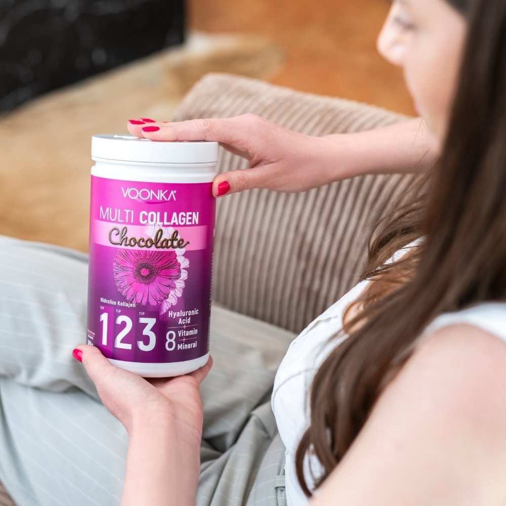 Η σοκολάτα Voonka Multi Collagen είναι η πολυσυστατική σας φόρμουλα με ακαταμάχητη γεύση σοκολάτας που θρέφει τα μαλλιά, το δέρμα και τα νύχια σας, για να νιώθετε και να δείχνετε όμορφα κάθε μέρα.